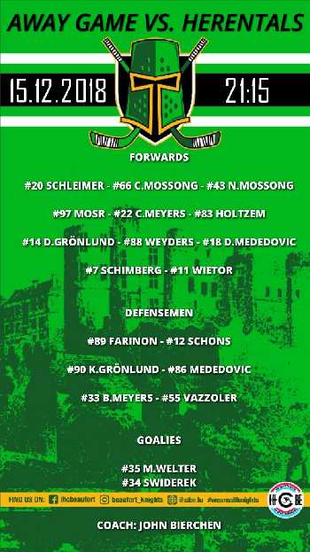 Opstellung vun de Spiller vum Auswärts Match géint Herentals B