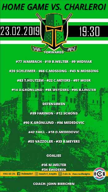 Opstellung vun de Spiller vum Heem Match géint Charleroi Red Roosters